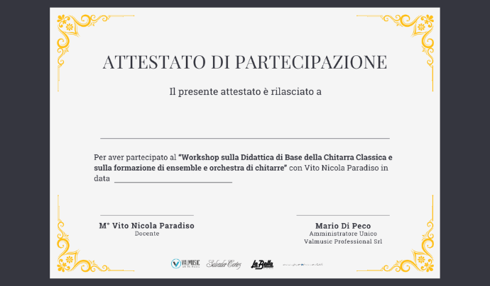 Un incontro formativo con il Maestro Vito Nicola Paradiso rivolto ai docenti di chitarra, pensato per ottimizzare i tempi di lavoro con i propri alunni, creare il giusto entusiasmo all’interno della classe di chitarra e sviluppare il lavoro di musica d’insieme nelle scuole attraverso ensemble e orchestre di chitarre.